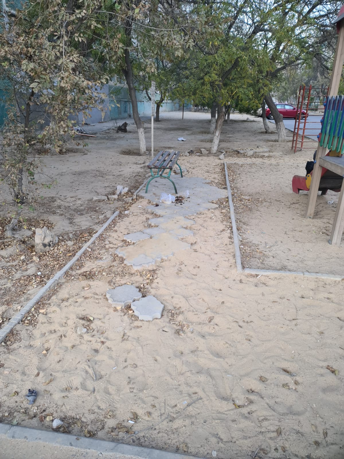 Летом в 9 микрорайоне была реконструкция дорог. При этом повредили детскую площадку сзади 3 дома,сняли брусчатку,убрали мусорные ведра. В общем не привели обратно площадку в нормальное состояние,хотя прошло уже достаточно много времени,теперь там грязно и некрасиво,а там играют дети. Почему не вернули площадку хотя бы в первоначальный ее вид?