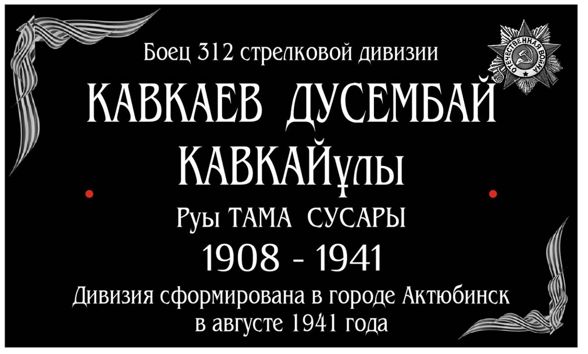 Добрый день! 14.11.2021 в селах Афанасово и Детчино Калужской области прошло мероприятие с открытием памятной доски актюбинцу Кавкаеву Дусембаю. Он принимал участие в боевых действиях 312-й стрелковой дивизии в обороне Москвы вместе с Панфиловцами и Подольскими курсантами. От имени актюбинского поискового отряда "Алия" были вручены медали "80 лет 312 стрелковой дивизии". Мы почтили память минутой молчания, салютом, стихами и песнями военных лет, а также был прочитаны суры из Корана в память о погибших бойцах той страшной войны. Прошу поддержать людей, организовавших это событие: