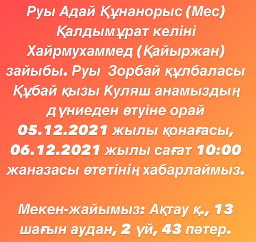 Похороны состоятся 6 декабря в 10:00 часов по адресу: 13 микрорайон, дом №2, 43 квартира.