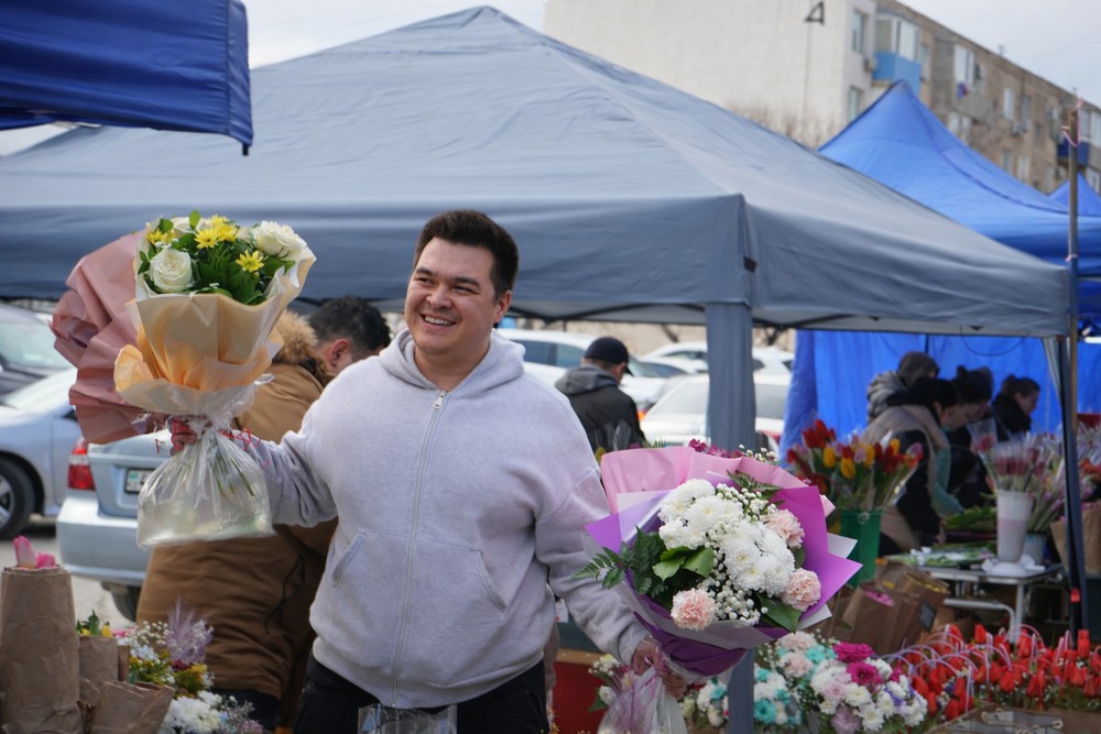 8 Марта встретило пасмурным утром, однако уже к обеду погода порадовала жителей солнечными лучами. Вместе с этим на улицах города оживилась и праздничная атмосфера: у цветочных точек образовались очереди, а мужчины спешили купить букеты для своих мам, жен, дочерей и внучек. Корреспондент Lada.kz побывал у торговых рядов и запечатлел атмосферу праздника.