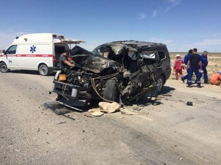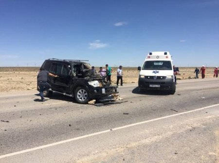 Авария произошла сегодня, 20 июня, в районе шестого разъезда в Мангистауской области. Столкнулись, как сообщили очевидцы, автомобили Mitsubishi Pajero и ГАЗ.