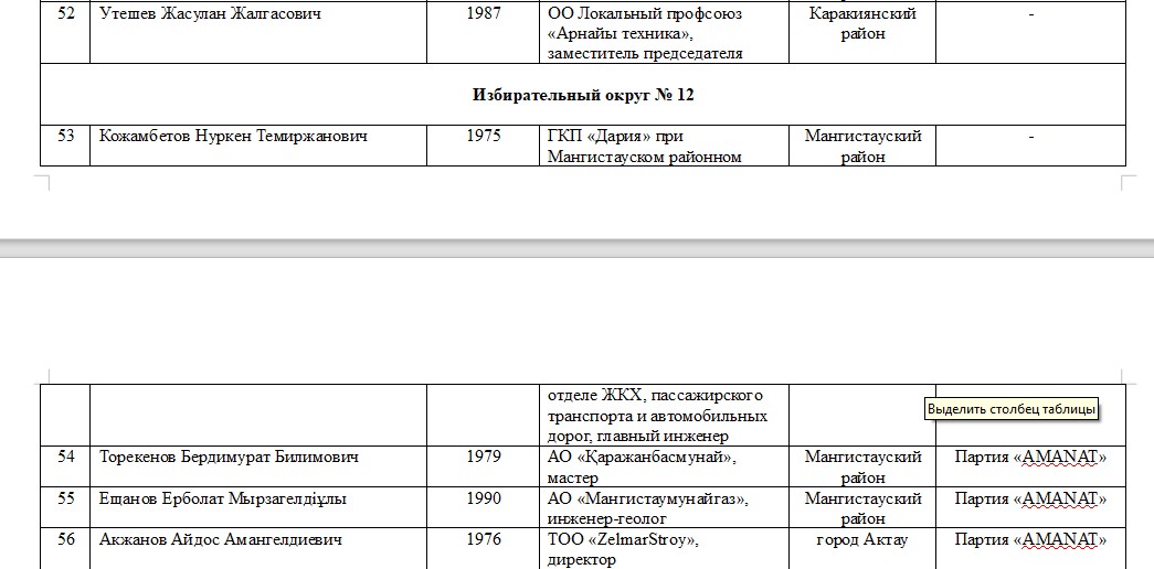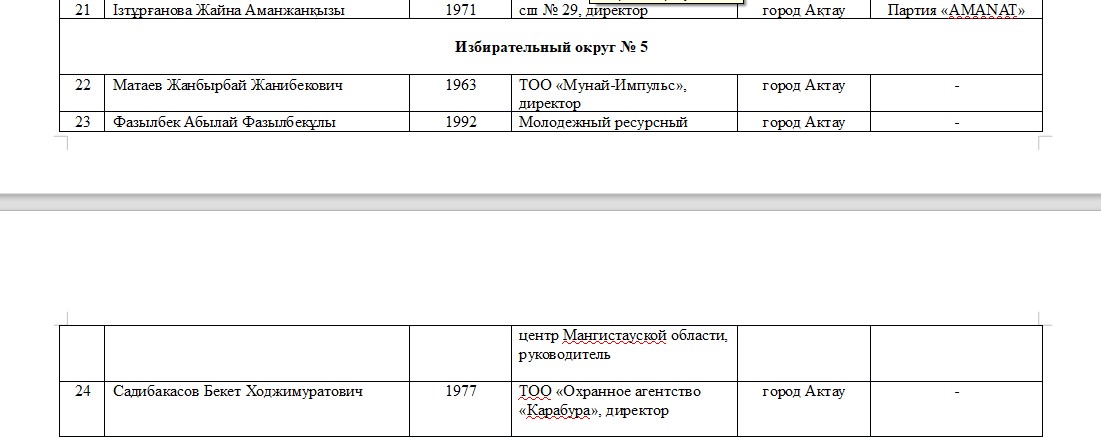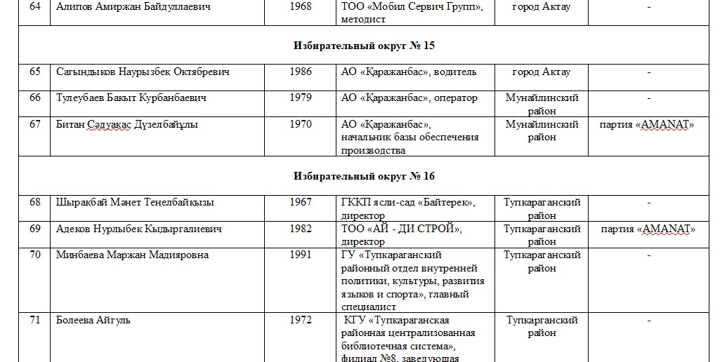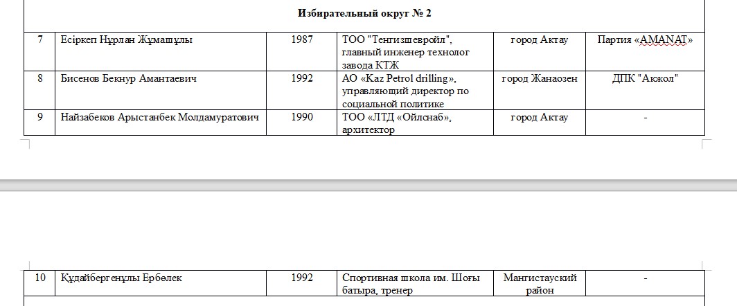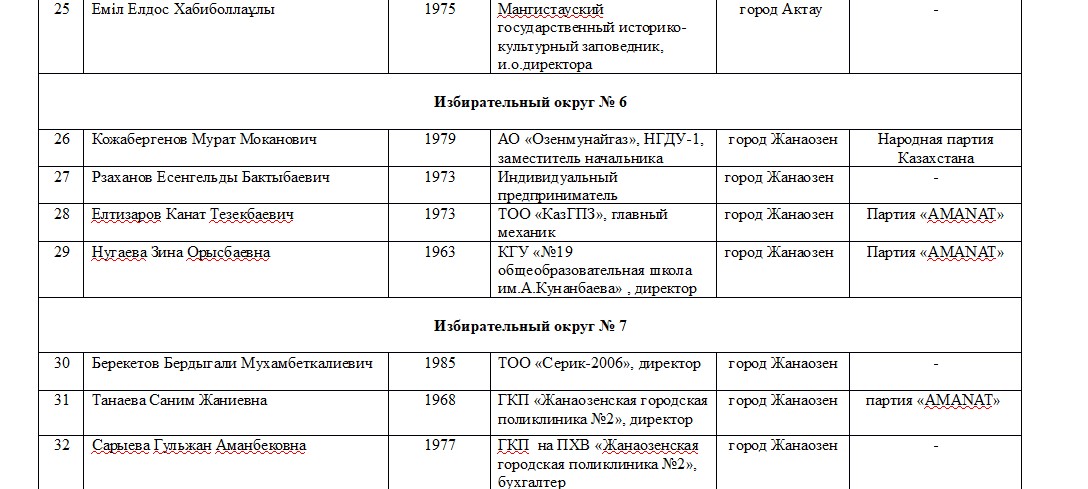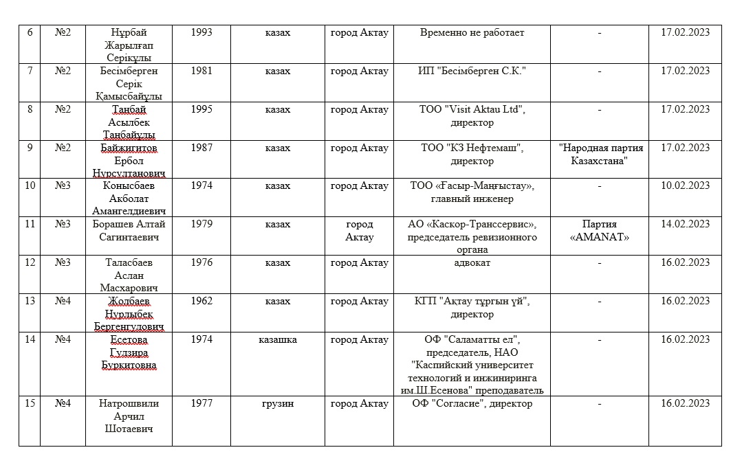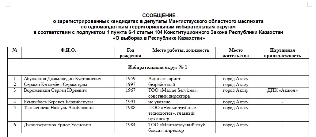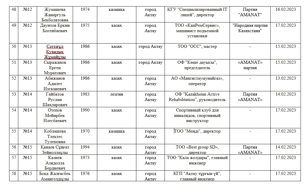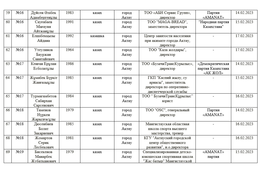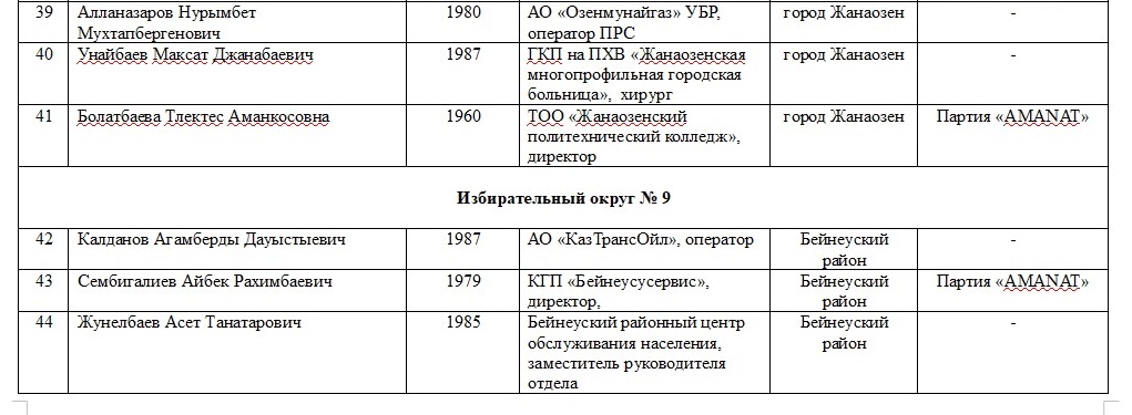 По данным областной избирательной комиссии, из Мангистау в депутаты Мажилиса Парламента Республики Казахстан выдвинуто 11 кандидатур: один от политической партии «AMANAT» и 10 человек - самовыдвиженцы.