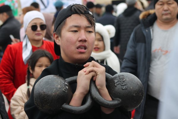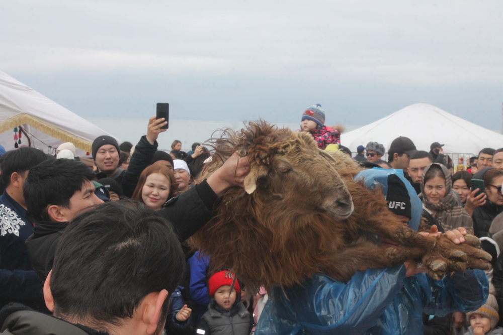 Довольно увлекательным состязанием стало также национальное развлечение - поднятие барана.