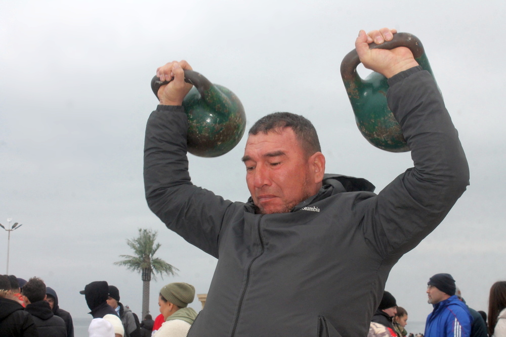 Горожане активно участвовали в спортивных состязаниях: борьбе на руках и соревнованиях с гирями.