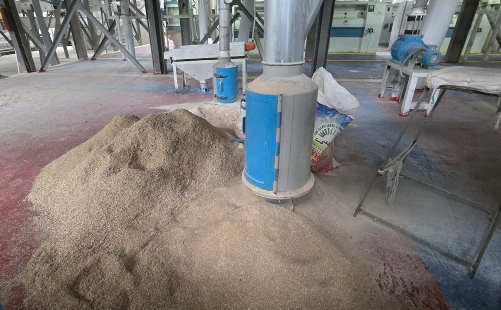 В настоящее время на терминал прибыло 10 вагонов, что составляет 700 тонн пшеницы. Из 75 процентов зерна производится мука, а из оставшихся 25 процентов — отруби.