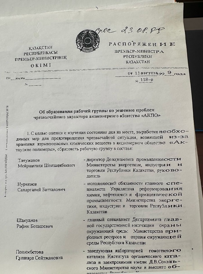 Взрывоопасные вещества были вывезены в несколько этапов, и в июне 2000 года последнюю партию пероксидов вывезли с территории предприятия. Благодаря слаженным действиям межведомственной рабочей группы, созданной по инициативе Кажимурата Хайрушева, и организации вывоза опасных веществ с территории предприятия удалось предотвратить техногенную аварию. Оперативные меры сыграли ключевую роль в устранении угрозы.