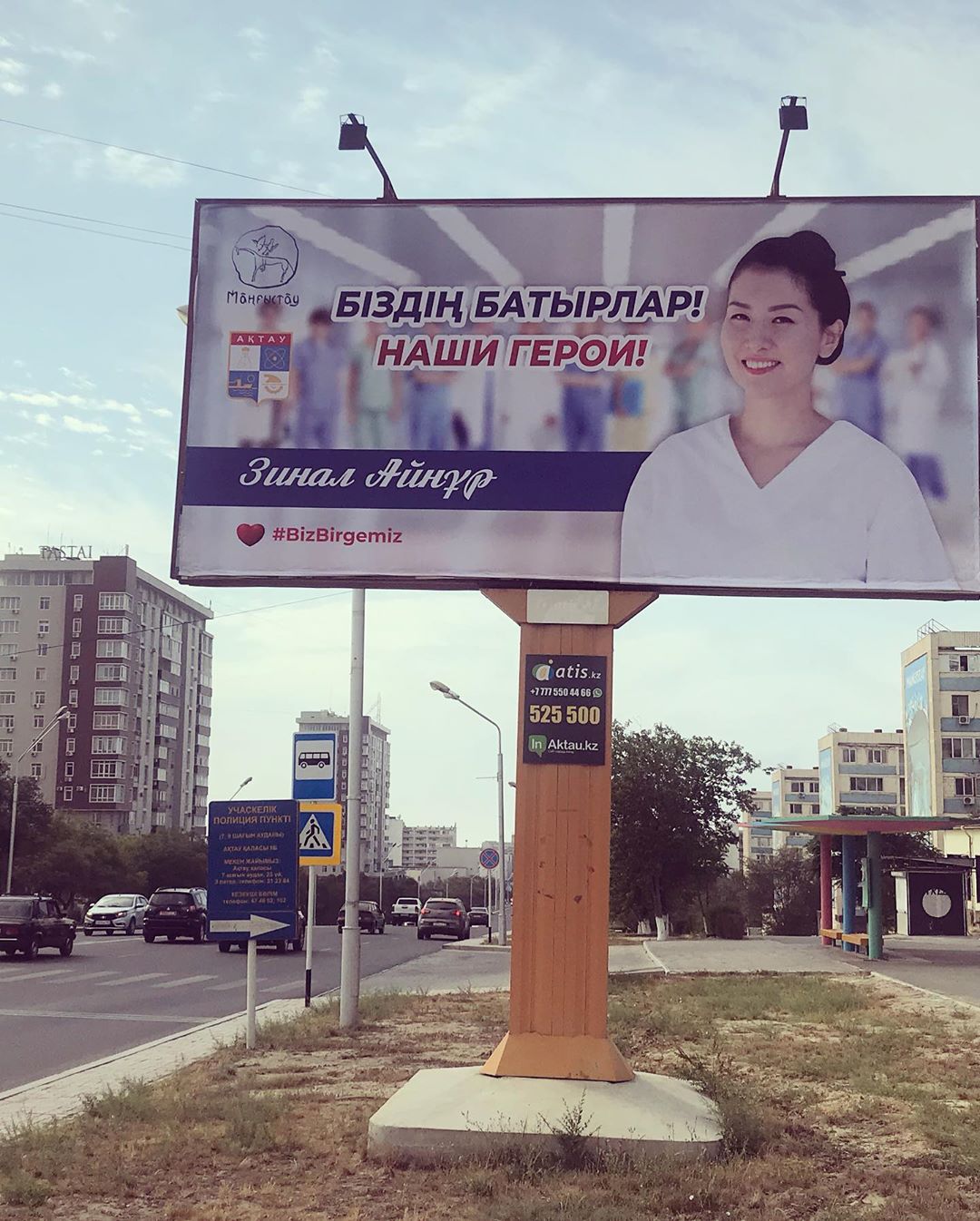 Фотографии врачей разместили на билбордах, установленных вдоль центральных улиц Актау.