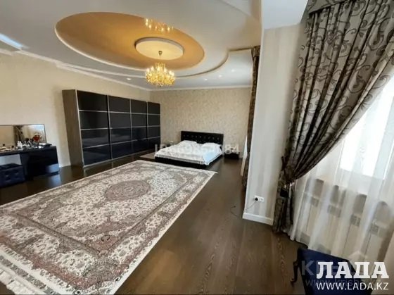 Ещё один особняк - 13-комнатный дом за 600 миллионов тенге, площадью 800 квадратных метров. На четырёх уровнях, включая цоколь и мансарду, расположены различные жилые и подсобные комнаты: гостиные, спальни, гардеробные, спортзал, прачечная и так далее. При этом дом продаётся полностью меблированным и со всеми удобствами.
