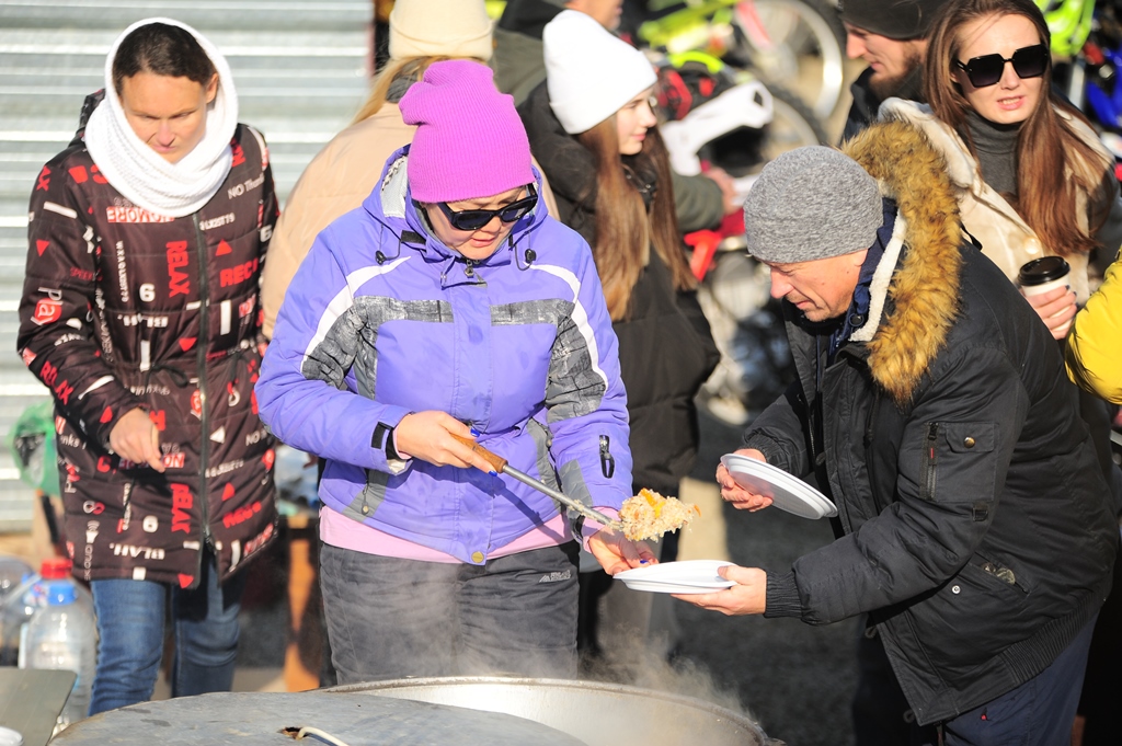 В перерывах участников и зрителей организаторы угощали горячим пловом и ароматным чаем.