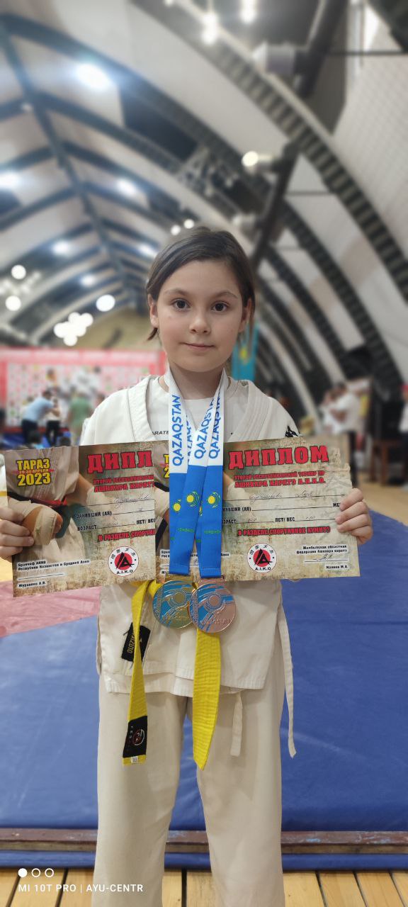 4. Айсулу Мухамбетова в категории девочки 8-9 лет свыше 35 кг получила бронзовую медаль (тренер С. Березин);