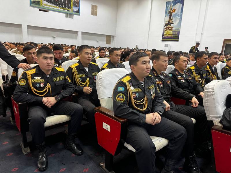 Также в честь главного государственного праздника в Актауском гарнизоне военнослужащие бригады морской пехоты провели торжественное собрание, которое прошло в культурно-досуговом центре войсковой части 25744.