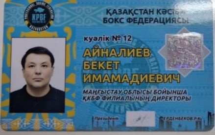 Бекету Айналиеву вручили документ, подтверждающий, что он является руководителем федерации профессионального бокса Мангистауской области.