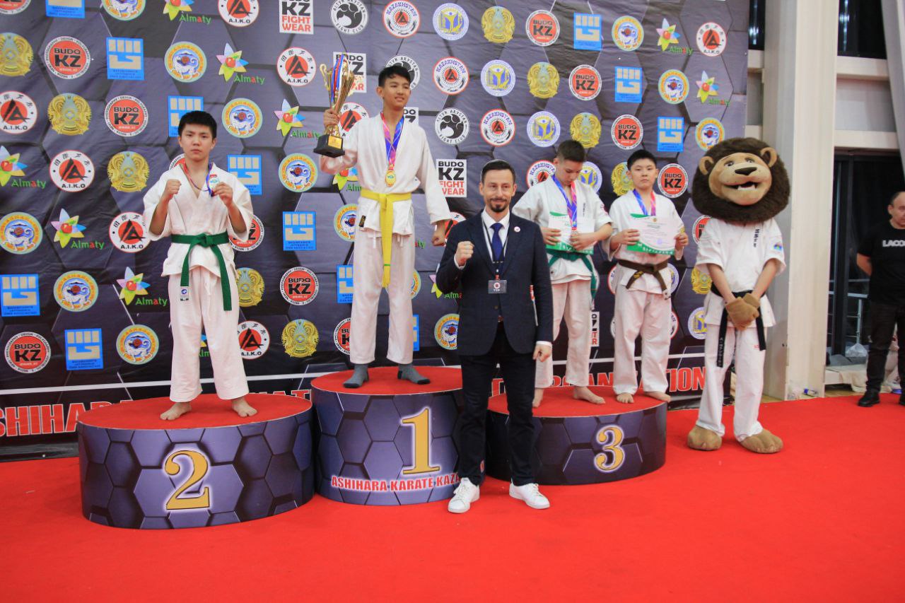 Команду из Актау представляли 16 бойцов и два тренера - бранч-чиф ашихара Kyokai Шорин Андрей и директор федерации Ashihara Karate Мангистауской области Дмитрий Печкин.