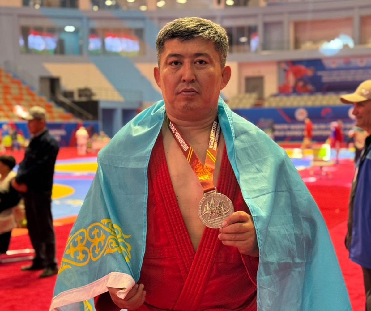 Манарбек Бисекенов, первый вице-президент Федерации самбо РК и руководитель центра подготовки олимпийского резерва Мангистауской области, завоевал бронзовую медаль в весовой категории до 79 килограммов.