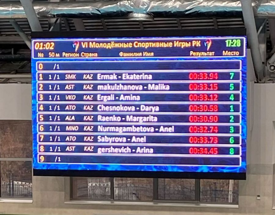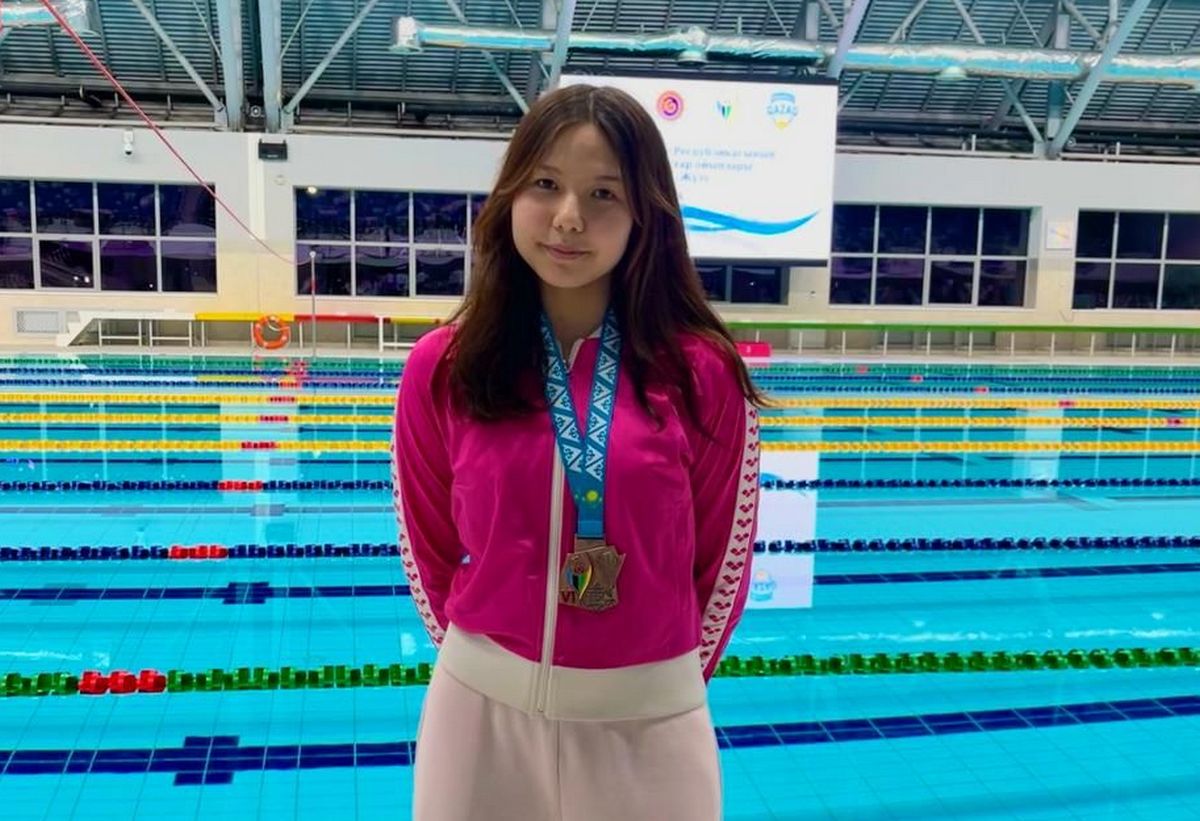 Наша пловчиха – 15-летняя Анэль Нурмагамбетова удостоилась «бронзы» по плаванию на дистанции 50 метров на спине.