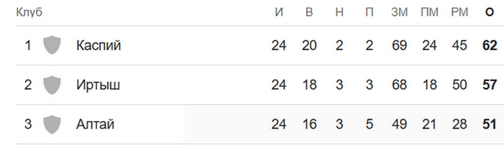 В турнирной таблице наша команда лидирует с 62 очками. Следом идет «Иртыш» - 57 и замыкает тройку «Алтай» - 51.