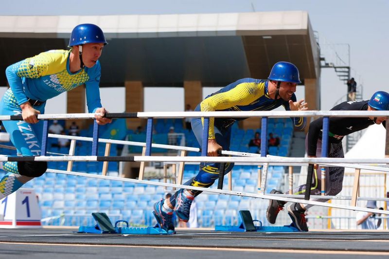 Абай занял первое место в забеге по штурмовой лестнице, установив личный рекорд — 13,76 секунды в первый день соревнований.
