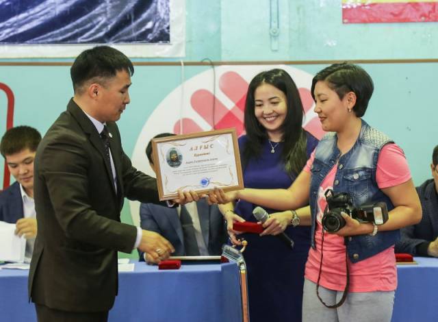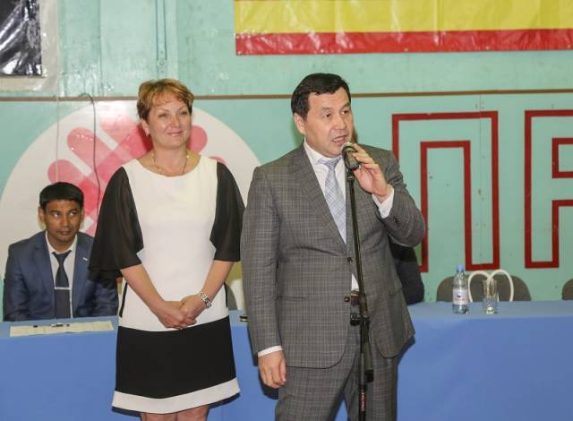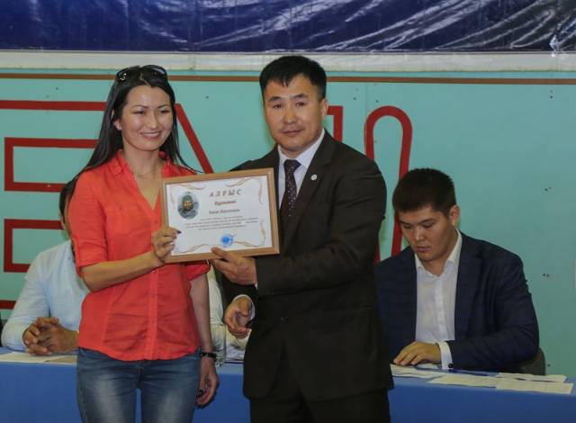 Организатор турнира, директор спортшколы "Жастар" Манарбек Бисекенов вручает награды победителям. Фото Жаната Айганина