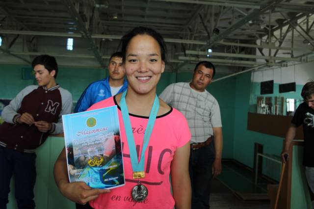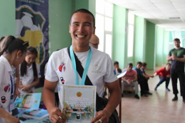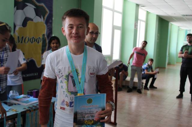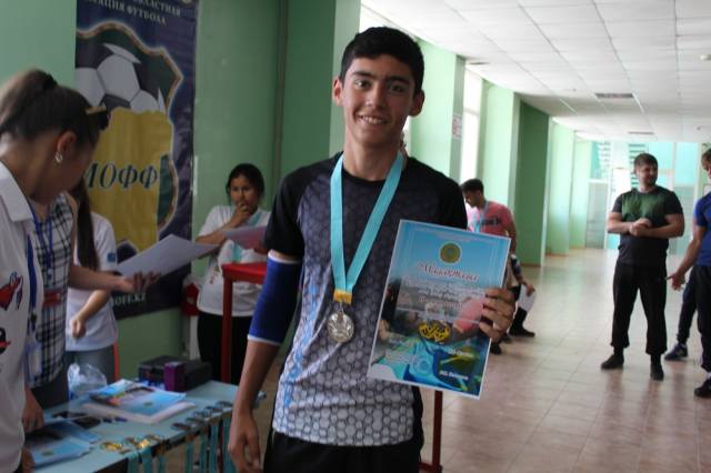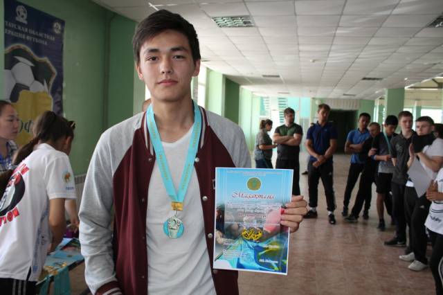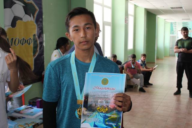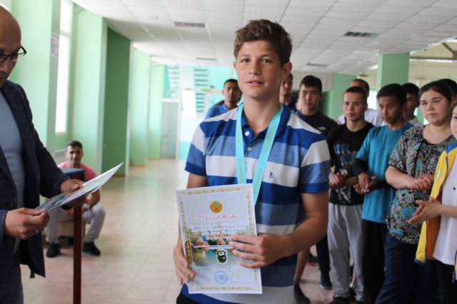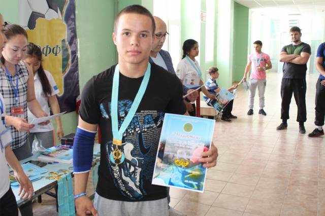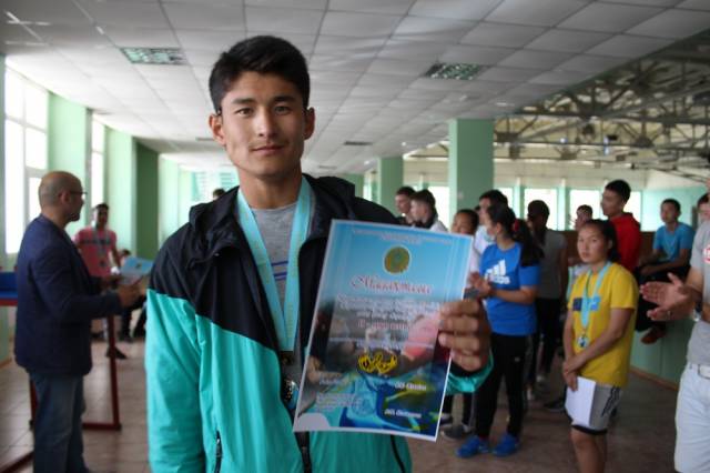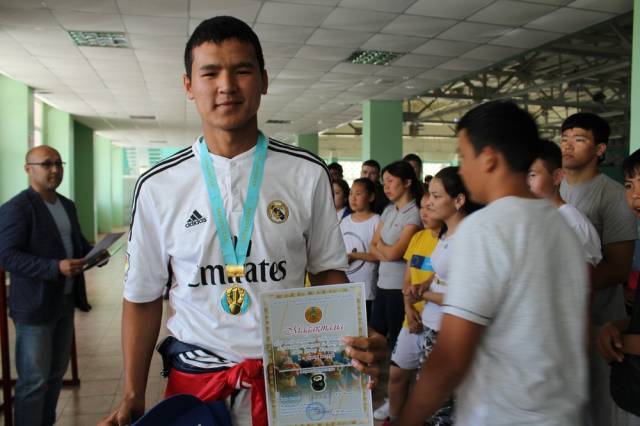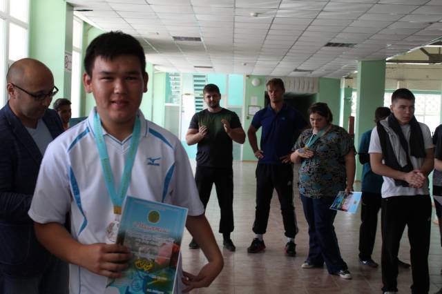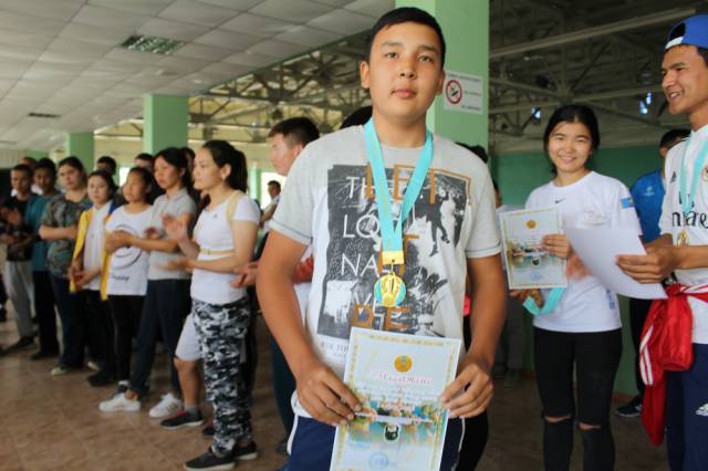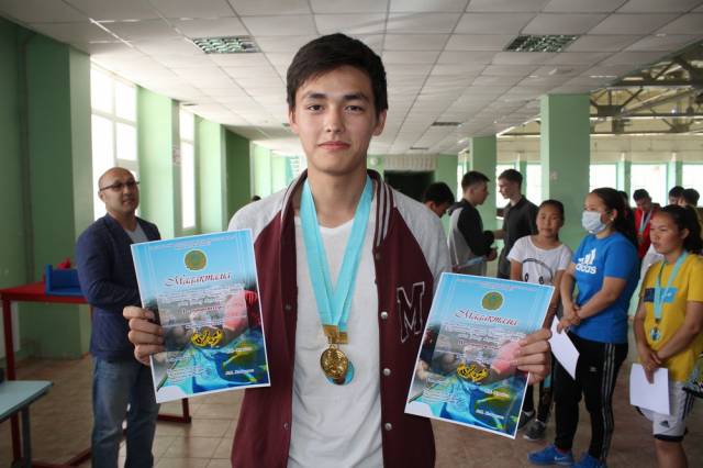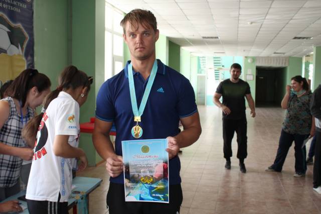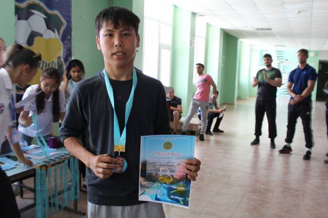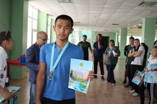 Нуркен Айткали, ученик 10 класса средней школы №11, победитель соревнований в весе 95 килограммов