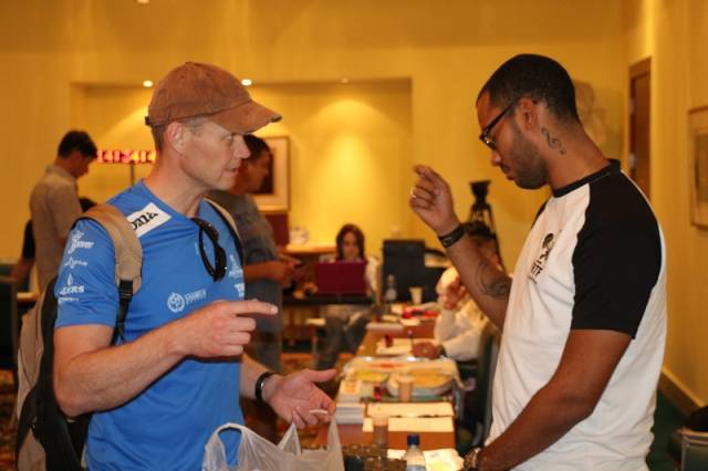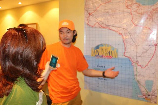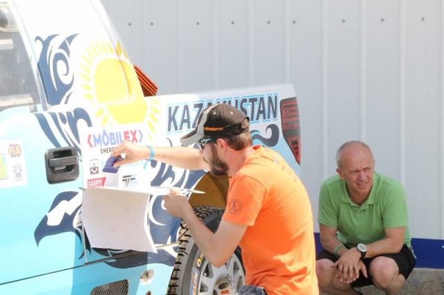 Значимость спортивного события подтверждает участие в них звезд мировой величины. Вот среди прошедших административную комиссию мы видим обладателей кубка мира по ралли-рейдам, победителей и призеров многих международных соревнований, Дениса Березовского — он чемпион мира по ралли-рейдам прошлого года (участвует вне зачета) и Артура Ардавичуса. Вместе с ними еще один именитый казахстанский спортсмен, пилот команды Kazakhstan Андрей Чередников. Здесь же видим Фреда Галлахера, представителя Международной автомобильной федерации (FIA), прибывшего в Мангистау в качестве наблюдателя ралли.