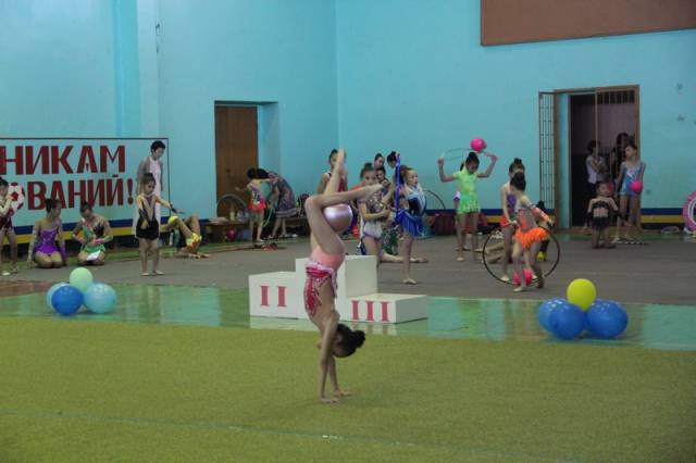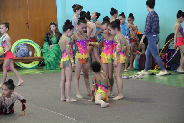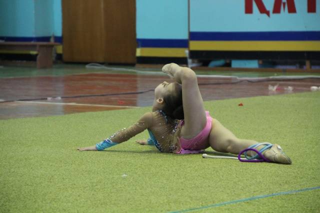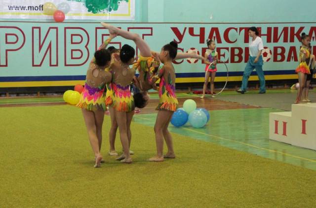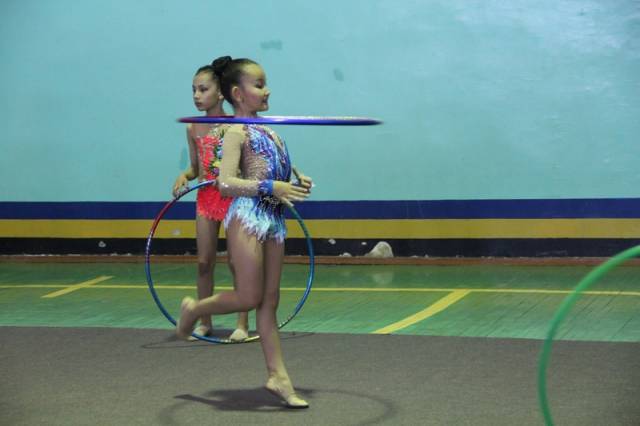 Спортсменки выступили в индивидуальной программе. Самым маленьким девочкам разрешено было демонстрировать мастерство без предметов. Девочки постарше показали упражнения с мячом, обручем, скакалкой и булавами.