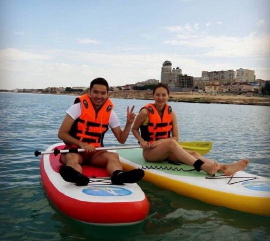 - Я считаю, что в Актау хватает морских видов спорта. Есть и яхт-клуб, развивается парусный вид спорта, подводная охота и другое. Но проблема в том, что оборудование для активного отдыха на море очень дорогое, а бизнес-ориентированными для отдыха, в основном, являются: водные лыжи, гидроциклы и различные водные аттракционы типа «банан». Но это не совсем тот вид отдыха, которым можно заниматься семьями, с детьми. А плюсом «SUP Surfing» является то, что это более спокойный вид спорта, для людей с абсолютно любым уровнем физической подготовки, поскольку на доске «SUP» можно плавать и сидя, и стоя, - отмечает Данияр Ескалиев.