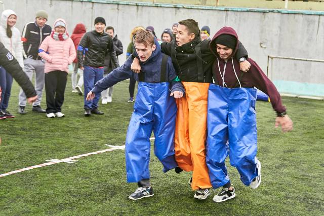 Студенты соревновались в состязаниях «Перетяни сосиску», «Гига-мячи», «Гига-эстафета», «Сумо» и «Куб».