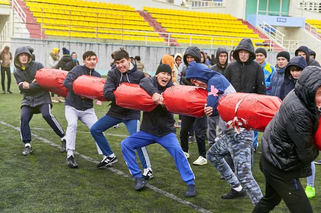 На стадионе Мунайшы 17 ноября встретились 150 студентов из числа студентов Актауского учетно-технологического колледжа, Актауского медицинского колледжа, Мангистауского колледжа туризма, Мангистауского гуманитарного колледжа, Мангистауского энергетического колледжа, Мангистауского колледжа искусств, Мангистауского политехнического колледжа, Каракиянского профессионального колледжа, КГУТиИ им. Ш.Есенова, медицинского колледжа «Мейрбике».