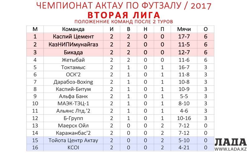 Команды «Жетыбай» и «Каспий Цемент», одержав по две победы, и в этом сезоне ставят самые высокие цели перед собой. В 2016 эти коллективы заняли первые места в Третьей лиге, получив, таким образом, право в этом году играть во Второй лиге.