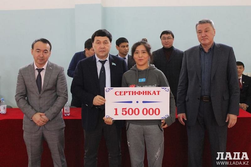 Камшат Карасайкызы получила чек на один миллион 500 тысяч тенге за победу на чемпионате Казахстана 2016 года. Камшат завоевала золотую медаль в категории до 48 килограммов, и теперь она номер один в национальной женской сборной РК по дзюдо.
