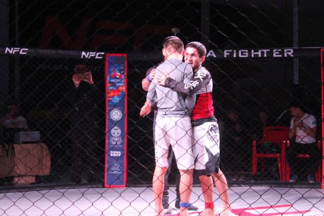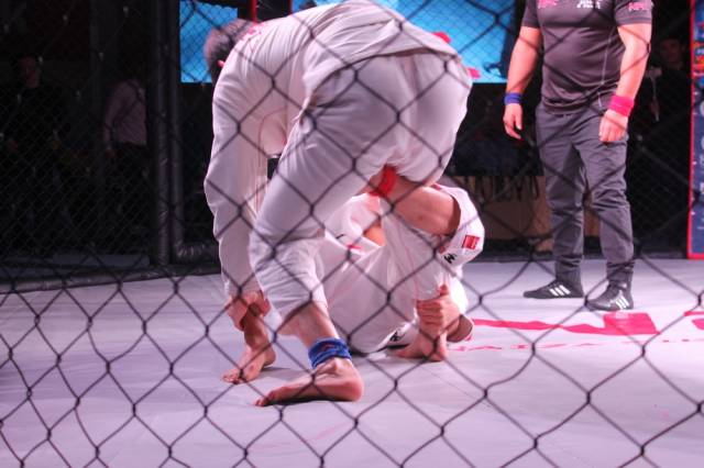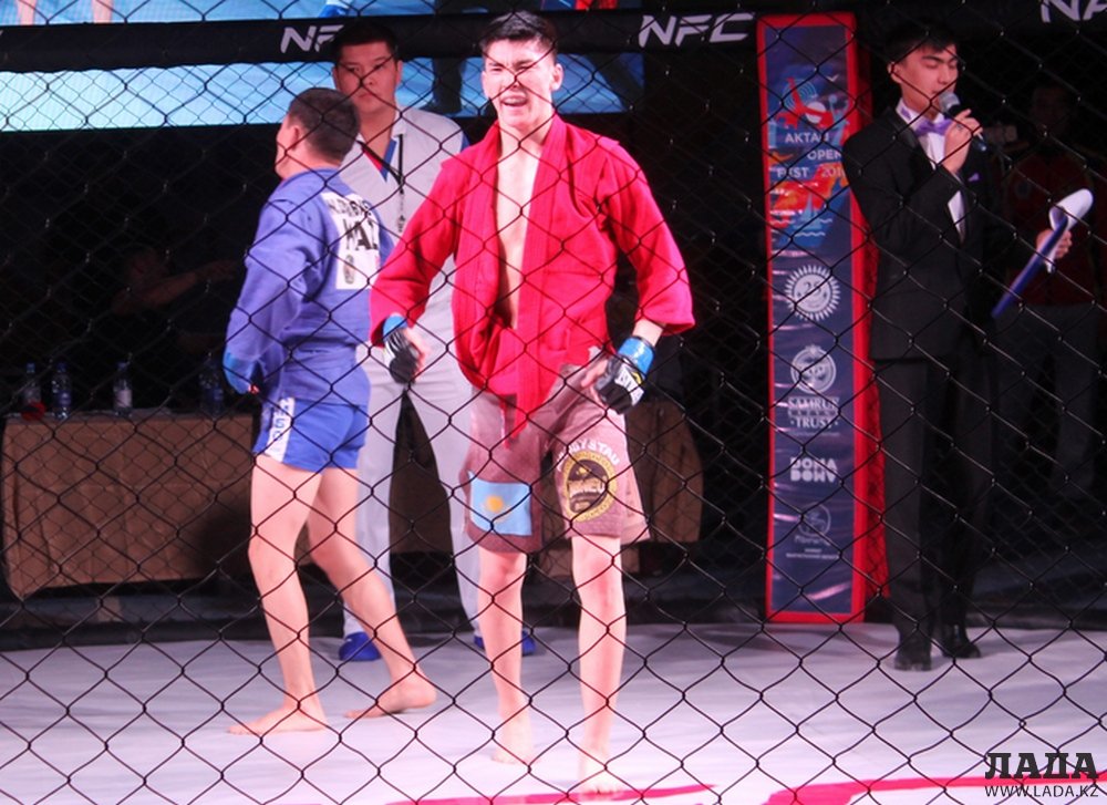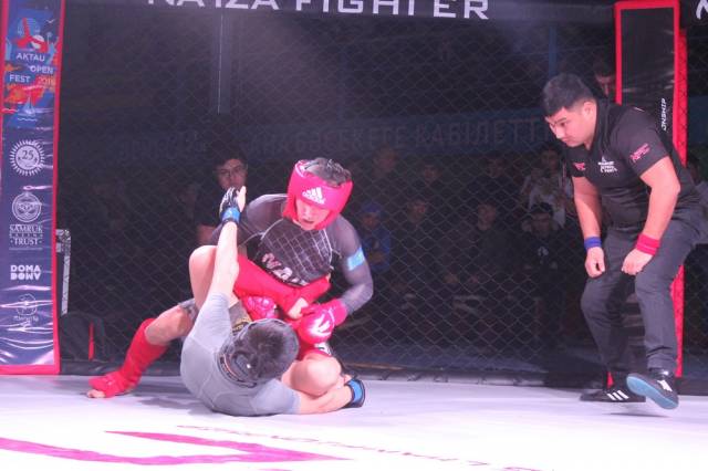 В схватке по грэпплингу сошлись наш актауский боец клуба «Найза файтер» - 16-летний Фариз Абдалов (чемпион мира и Азии по панкратиону) и 17-летний воспитанник Бейнеуского клуба ММА (чемпион Казахстана по панкратиону). Весовая категоря 55 килограммов. В этой схватке Фариз работал на баллы, получил их за тейкдауны. Свою победу он связывает с упорными тренировками и работой своего тренера.