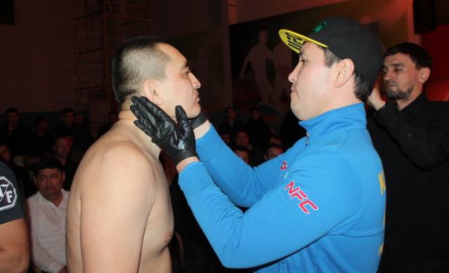Следующая пара выступила по рукопашному бою в весовой категории 65 килограммов. На ринг вышли актауский рукопашник клуба «Жастар» Мансур Мимбулатов по прозвищу «Красавчик» и его соперник из Бейнеуского клуба ММА Шынгысхан Дуйсек — коротко «Чина». Победу по очкам одержал Мансур.