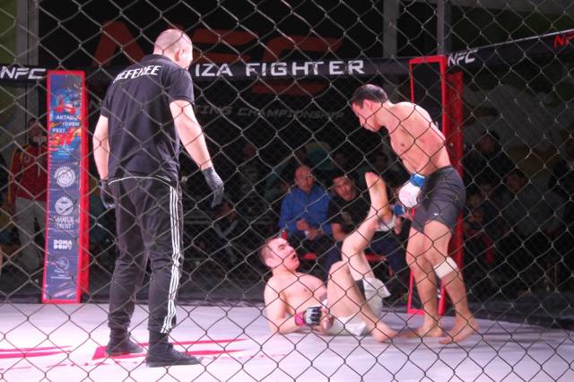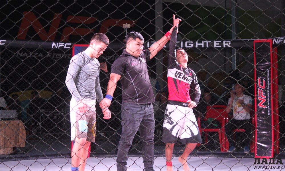 Сильнейшим титулованным бойцом за чемпионский пояс «NFC West Kazakhstan» в весовой категории 62 килограмма стал 23-летний атырауский боец Абылай Толеш. В завершающей схватке болевым приемом он вырвал победу у актауского представителя клуба «Найза файтер» - 21-летнего Шукыра «Универсальный солдат» Сагынай.