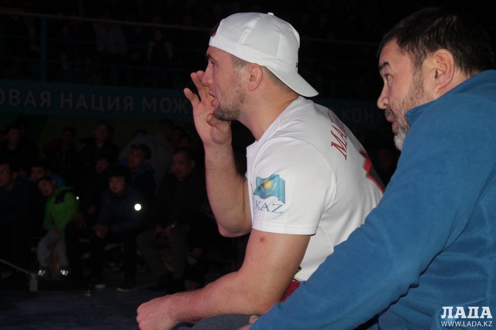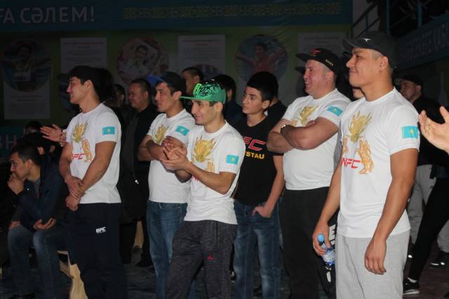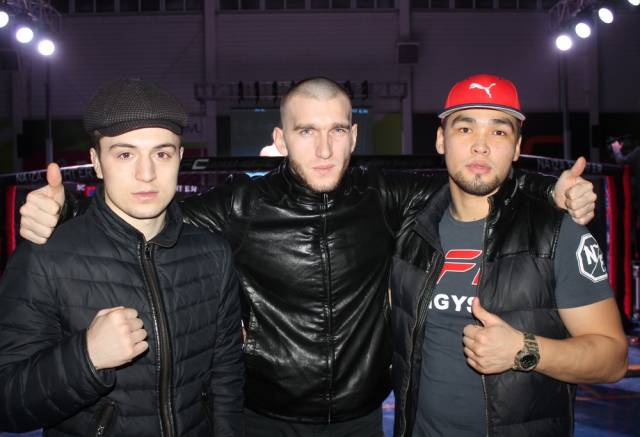 Приветствовали бойцов: Сагындык Макеев, президент федерации ММА, смешанных единоборств, панкратиона и грэпплинга РК, и Айдар Махметов, чемпион мира по ММА и карате.