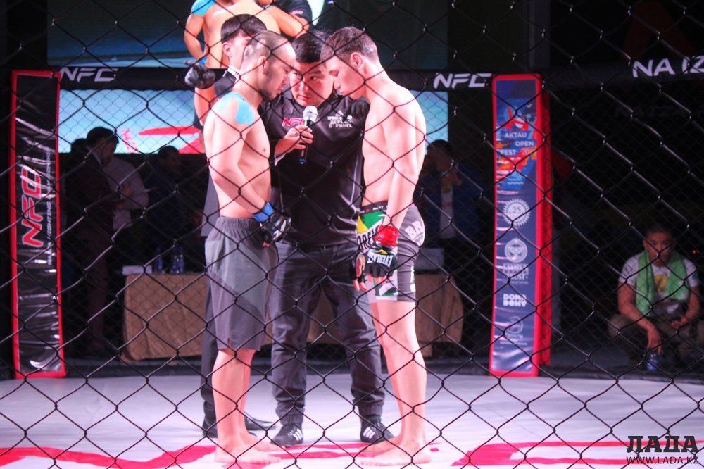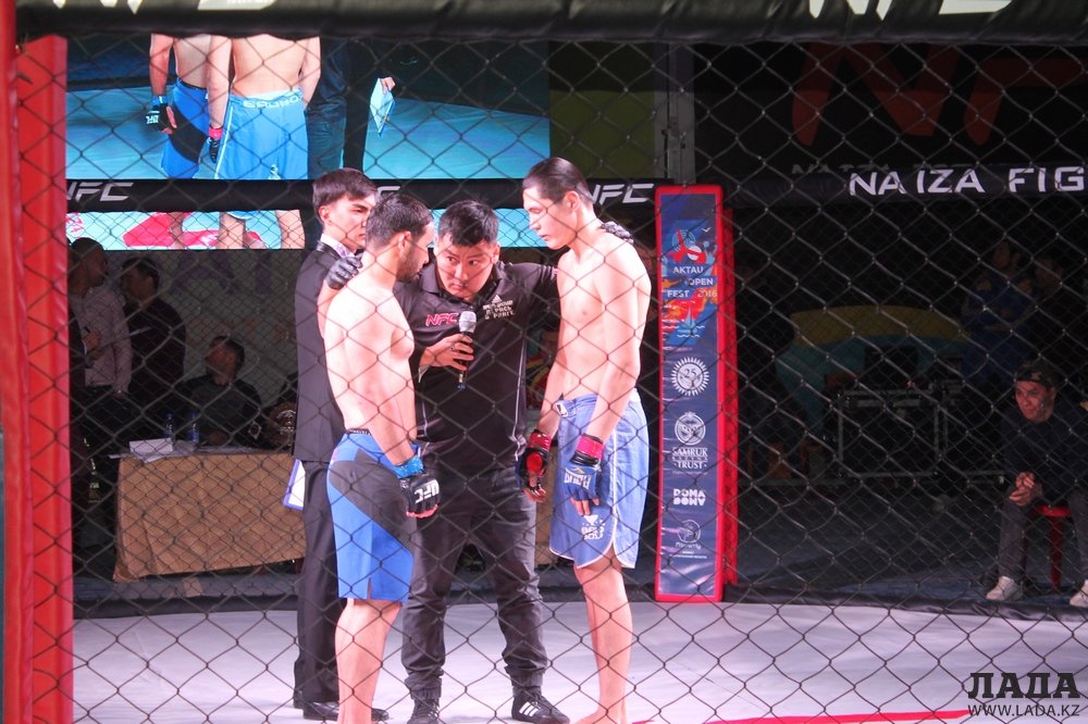 Первая пара: 28-летний Батыржан «Бачан» Байжанов (клуб «Арена» Актобе) и 34-летний Азамат «Найза» Абилов из актауского клуба «Найза файтер». В первом же раунде наш боец удушающим приемом обыграл актюбинца.