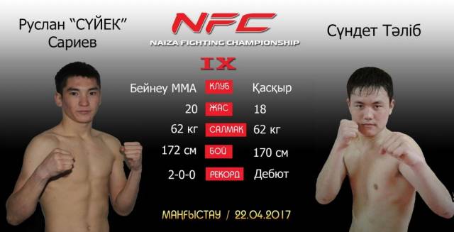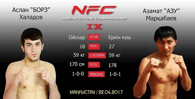 В рамках проекта «Хочешь драться? Дерись на ринге» в Актау пройдут 10 профессиональных боев NFC-9. В турнире примут участие спортсмены из Актобе, Атырау, Мангистау, Уральска и Чеченской республики.