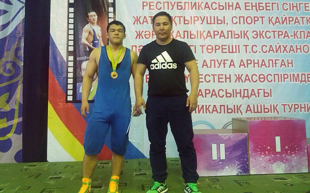Кайсар Турбергенов с тренером Канатом Шаркеевым. Фото предоставлено МОСДЮШОР