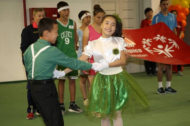 Спортсменов поддержала танцевальная группа из числа учеников младших классов специальной общеобразовательной школы №2 Актау, имеющие различные заболевания.