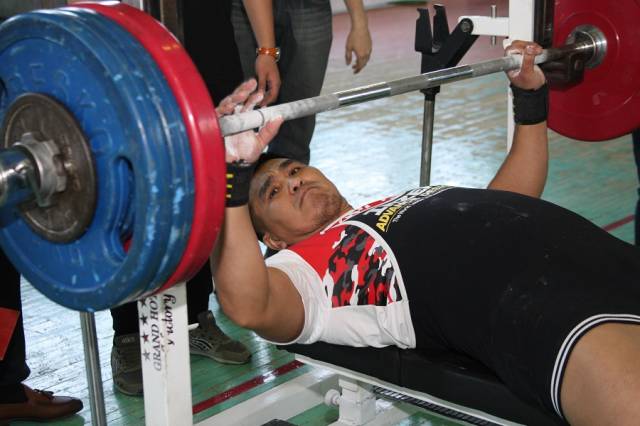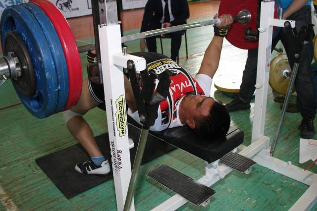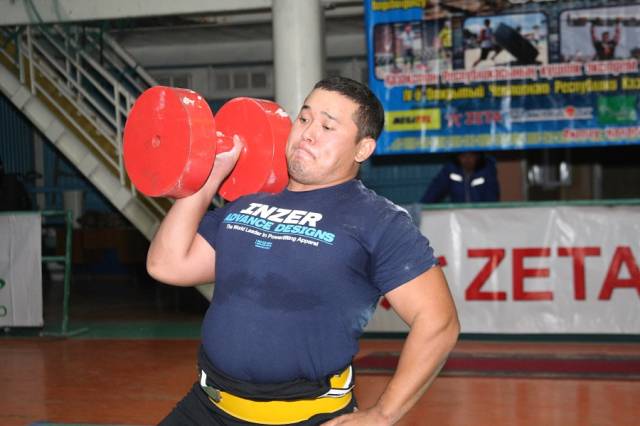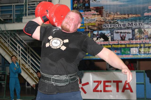 Четвертым испытанием стал жим гантели весом 75 килограммов нестандартным хватом. Спортсмены за полторы минуты должны были сделать максимальное количество повторений.