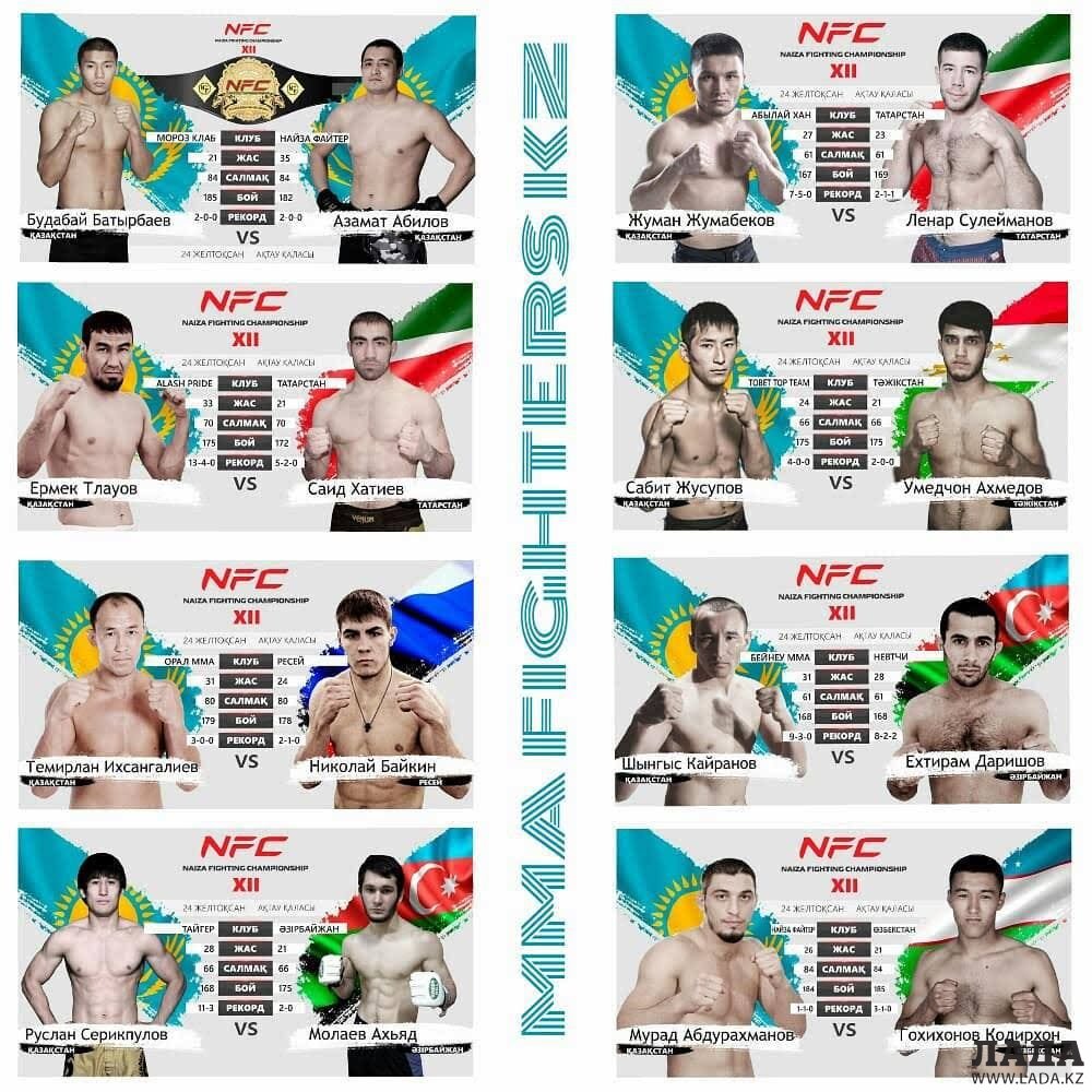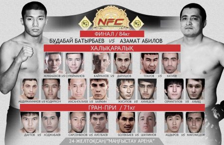 Одним из главных поединков организаторы называют финальный бой между двумя казахстанскими файтерами: Азаматом Абиловым из Актау и Будабаем Батырбаевым из Актобе.