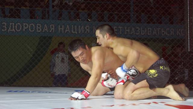 Захар Рябов, применив удушающий прием, одолел соперника из Актобе Султана Итемген. Актауский спортсмен выступит в полуфинале турнира по смешанным боям.