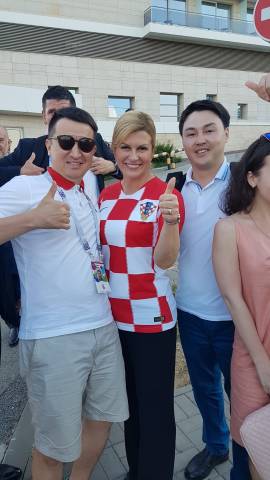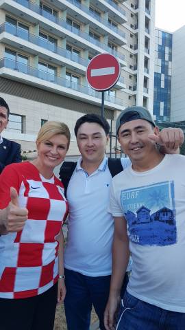 Мухтар Курашев и Серик Кенжетаев: Мы просто попросили. Это случилось накануне отъезда из России. С утра мы сходили на рынок, поплавали в море и решили пообедать. Думали, застанем хорватских игроков. Хотели выжать все по максимуму от поездки: это футбольный тур, а не культурный, поэтому везде следовали за любимой сборной. В общем, как приехали в район, мы видели кортеж, в котором ехала девушка в хорватской форме, и подумали – это президент. Помимо нас ее окружили многие болельщики, но мы кричали, что мы из Казахстана, и, наверное, это сыграло и повлияло на ее выбор. Она простой человек.