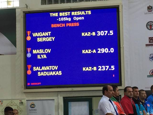 Четыре первых, а также второе и третье места на чемпионате Азии по пауэрлифтингу в отдельном виде упражнений «жим лежа» в Дубае завоевали мангистауские спортсмены. Об этом сообщил Арман Рыскали, старший тренер по пауэрлифтингу области.