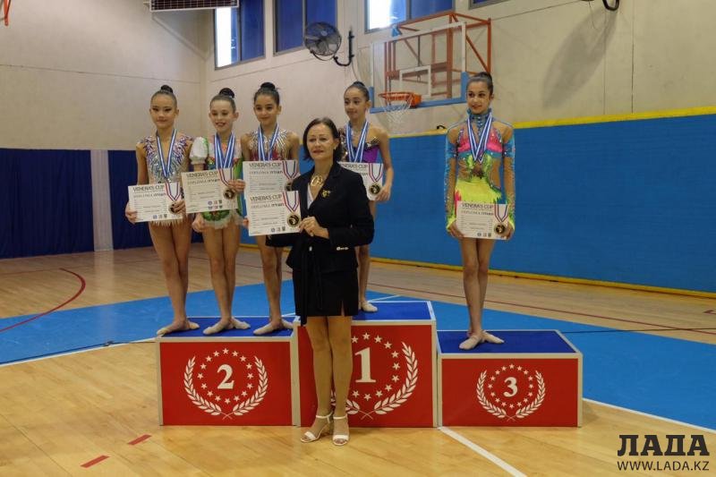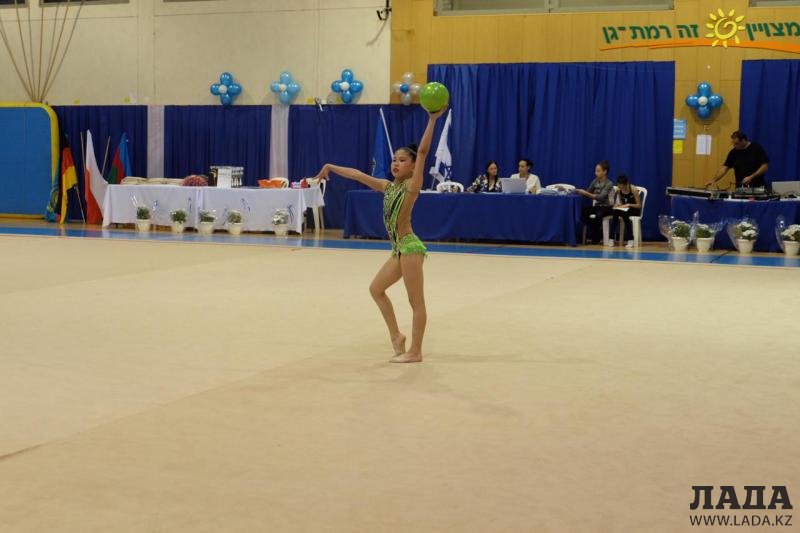 Жансая Жанбуршиева принесла команде две золотые медали в индивидуальной программе с предметами: лентами и булавами, и одну серебряную медаль в программе с мячом.