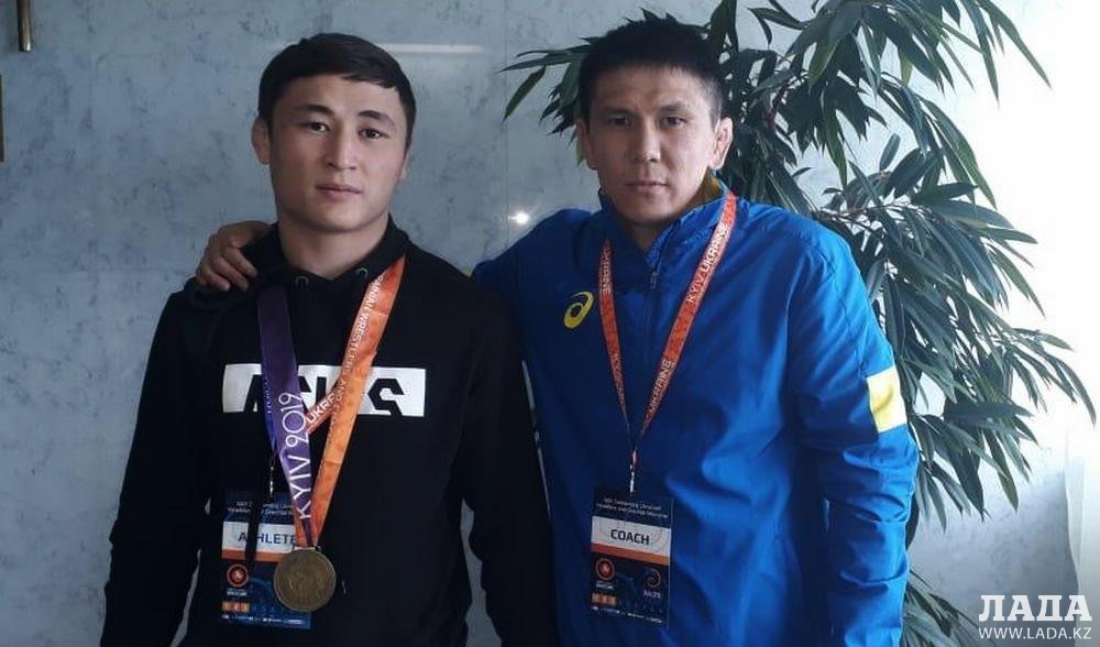 Алмас Турсынов со своим тренером Айсултаном Байзаковым