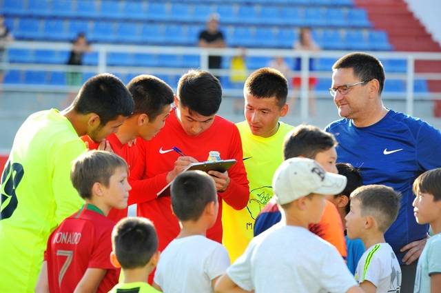 В мероприятии приняли участие главный тренер футбольного клуба «Каспий» Сава Ковачевич, его ассистенты и помощники, а также игроки профессиональной команды и тренеры футбольного центра.