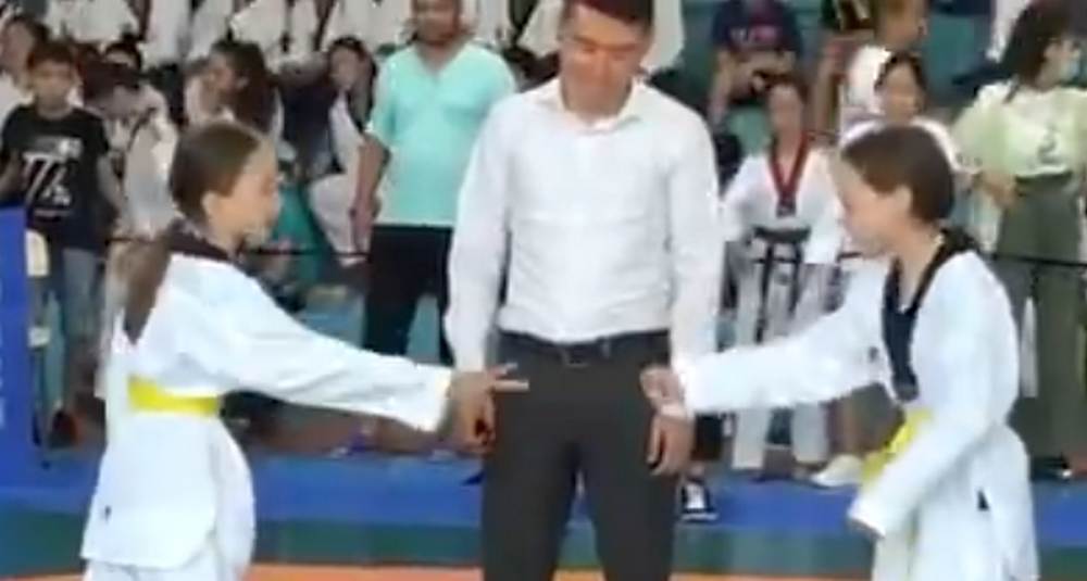 В финальном поединке за первое место в весовой категории до 24 килограммов вышли представительницы нашей команды - сёстры-близняшки Айя и Сая Кенжегали. Они не стали драться, а решили побороться за первое место, сыграв на руках «камень, ножницы, бумага». В итоге удача оказалась на стороне Айи Кенжегали.