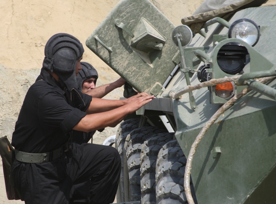 Водителям и командирам экипажей БТР пришлось на скорость проезжать сквозь огонь, по воде, забираться на крутые подъёмы и ехать по не менее крутым спускам.