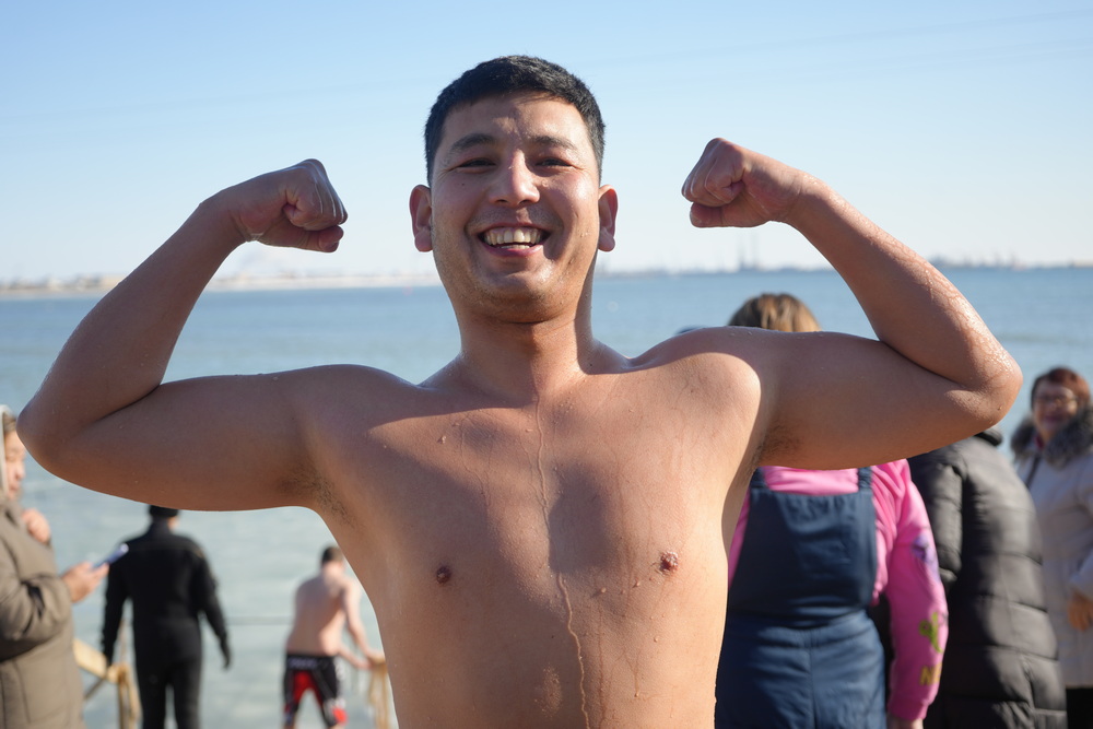 Местный житель Абиш рассказал, что впервые окунулся в 2019 году, а в этом году решился снова спустя семь лет. Он занимается моржеванием, поэтому холода почти не почувствовал и вышел из воды спокойно, не дрожа.