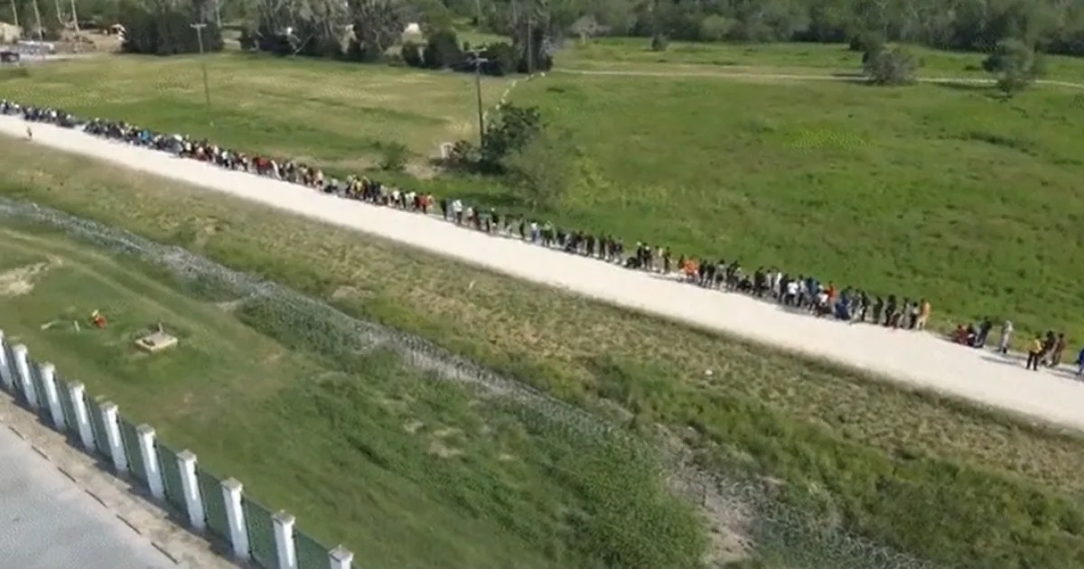 NEW: Remarkable video from our Fox drone team shows an enormous line of hundreds of migrants who just crossed illegally into Brownsville, TX this evening. A large majority of them are single adults. The RGV continues to see a massive surge of illegal crossings ahead of T42 drop. pic.twitter.com/xHDV8sc8PD